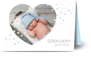 Dziecięce kartki z podziękowaniem to wspaniały sposób, aby podziękować przyjaciołom i rodzinie za ich wsparcie. To wspaniała okazja, aby zaprezentować zdjęcie nowego członka rodziny i podziękować przyjaciołom i rodzinie za uczestnictwo w baby shower (bociankowym). Możesz również umieścić dodatkowe informacje tj. datę urodzin i wagę dziecka oraz osobistą wiadomość bez dodatkowych kosztów. Nasze dziecięce kartki z podziękowaniem zostały zaprojektowane mając na uwadze nowo upieczonych rodziców i dlatego stworzyliśmy łatwy i szybki sposób dodawania zdjęć i tekstu – my zajmiemy się resztą! Tworzenie własnych kartek z podziękowaniem po baby shower jest wspaniałą, dziecinnie prostą zabawą i pozwala wyrazić jak bardzo doceniasz czas, wsparcie, prezenty i życzenia osób, które uczestniczyły w tym wydarzeniu. Oferujemy duży wybór projektów jak również znaczny stopień elastyczności – którykolwiek projekt kartki z podziękowaniem wybierzesz - możesz z modyfikować tekst i lokalizację każdego z elementów do uzyskania pełnej satysfakcji. Możesz dodać więcej zdjęć, więcej tekstu lub zmienić rozplanowanie elementów – nasze kartki są robione na zamówienie. Optimalprint proponuje Ci również przykładowe teksty, których możesz użyć!