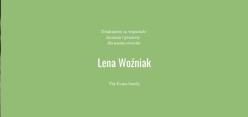 Łatwo personalizuj dziecięce kartki z podziękowaniami, aby były prawdziwie twoje. Dodawaj zdjęcia i treści na każdej strone kartki Optimalprint bez żadnych dodatkowych opłat. Łatwo personalizuj dziecięce kartki z podziękowaniami, aby były prawdziwie twoje. Dodawaj zdjęcia i treści na każdej strone kartki Optimalprint bez żadnych dodatkowych opłat.